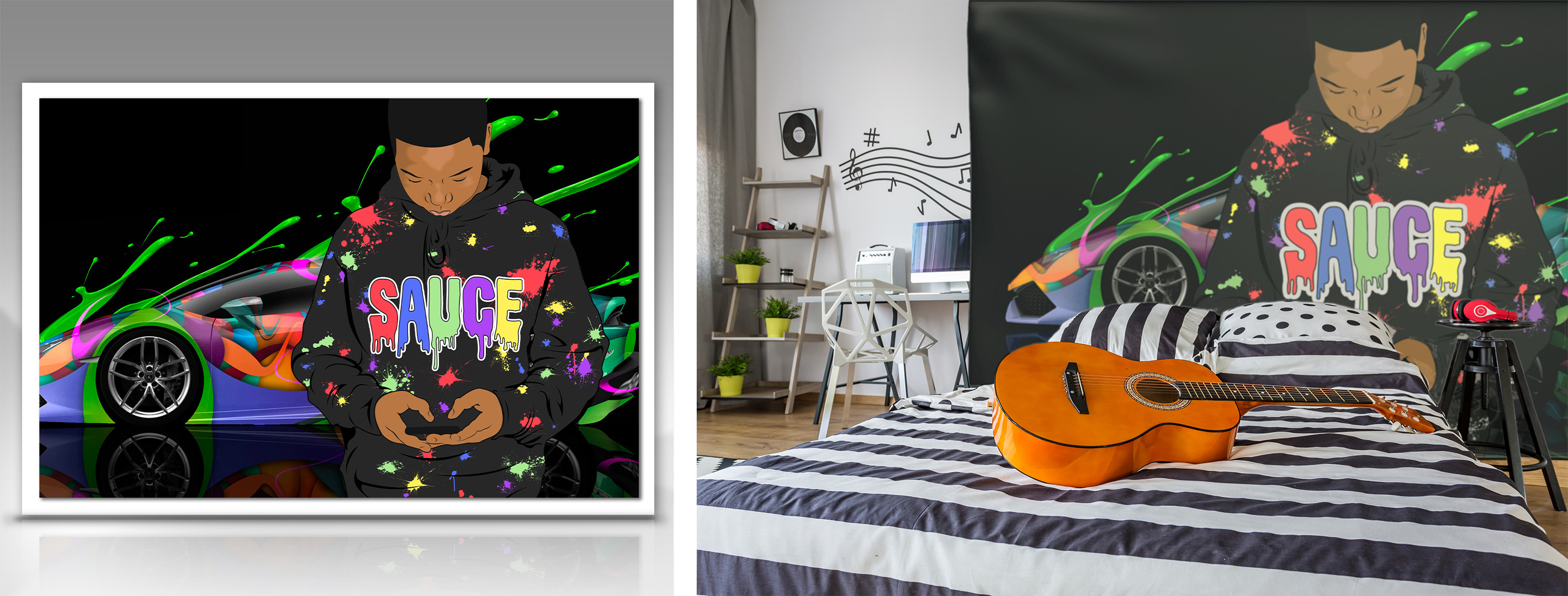 Process: Large-scale graphics, signage, and murals, including storefront branding and themed interiors.